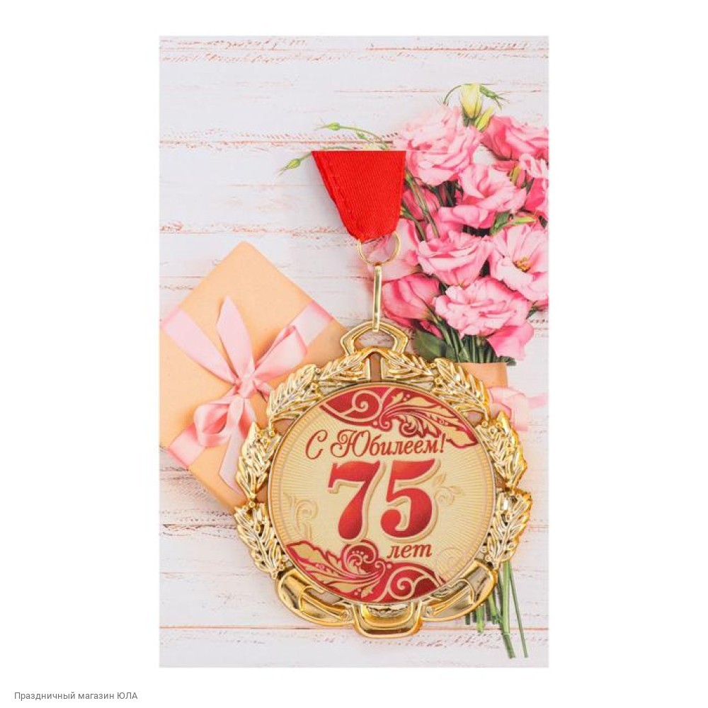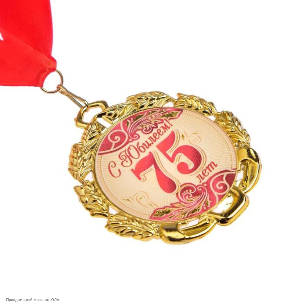 Медаль "С Юбилеем! 75 лет" красная (металл) 7см