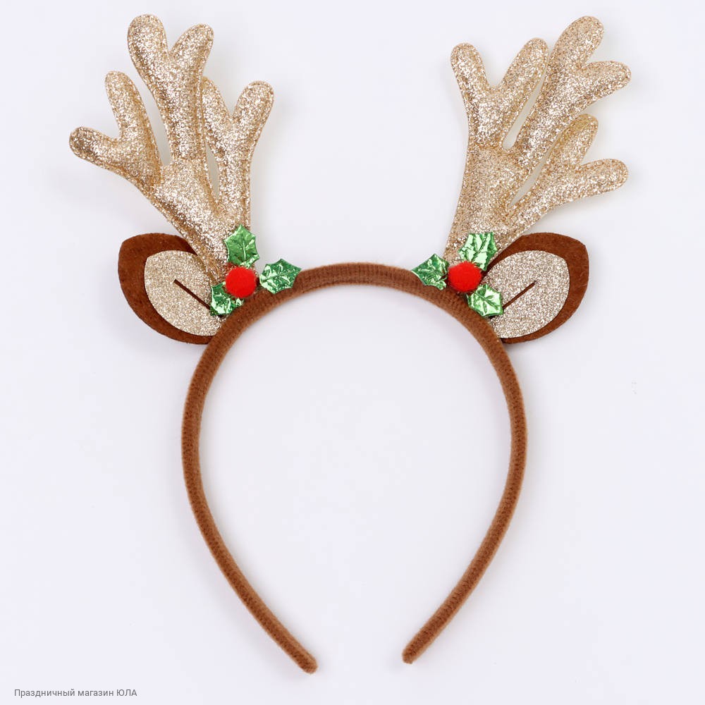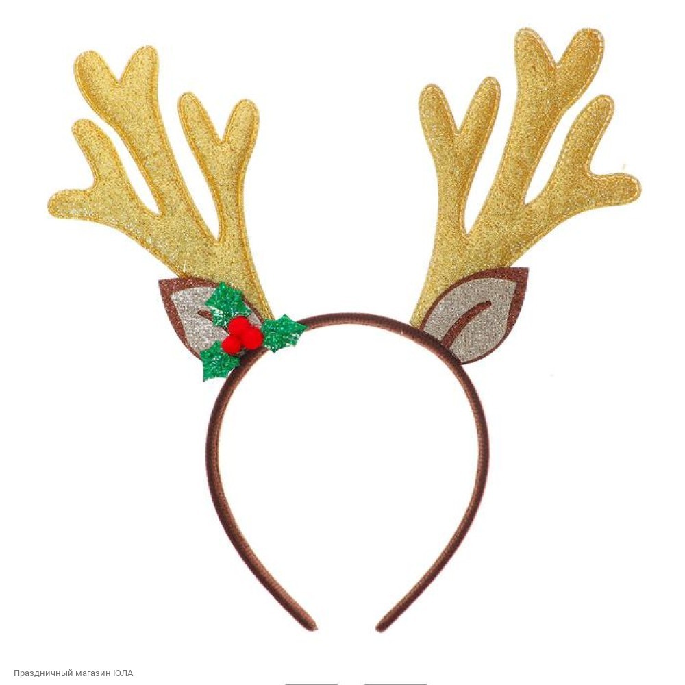 Ободок "Рога оленя с ушками" золото, серебро (блеск) 25*23см