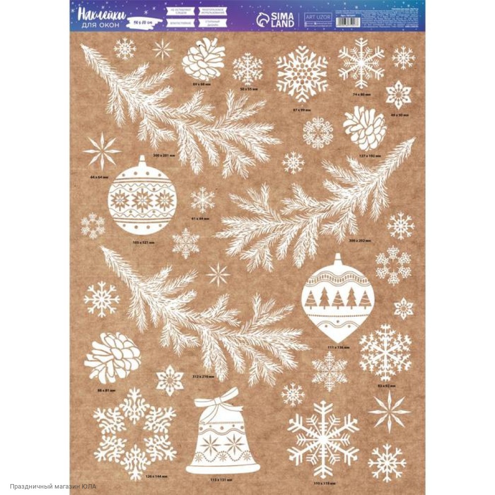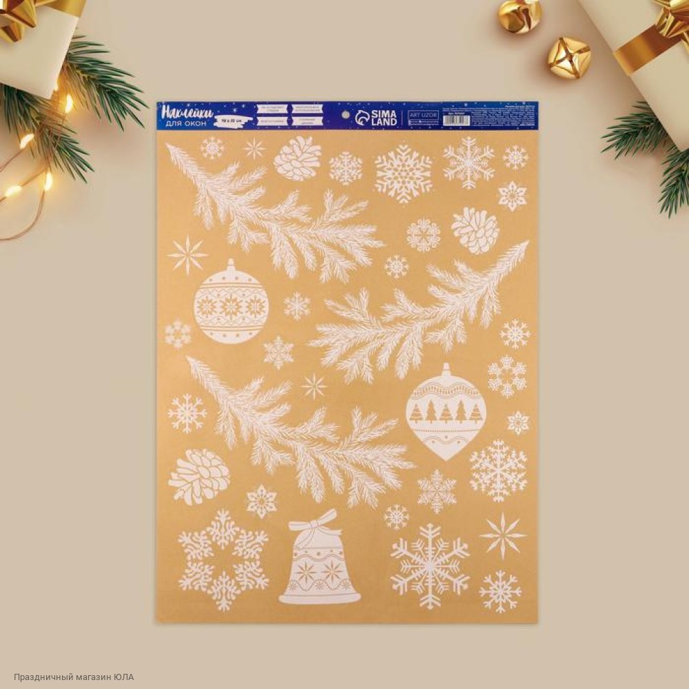 Наклейки статические 50*70 см "Игрушки на ветвях" белые