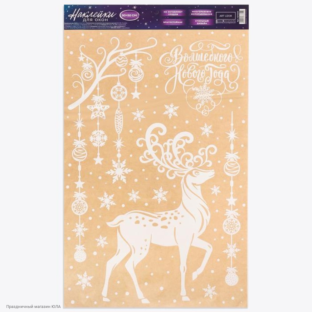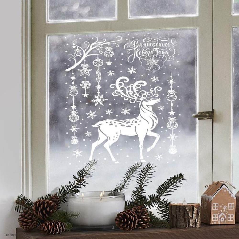 Наклейки статические "Волшебный олень" белые 33*50 см