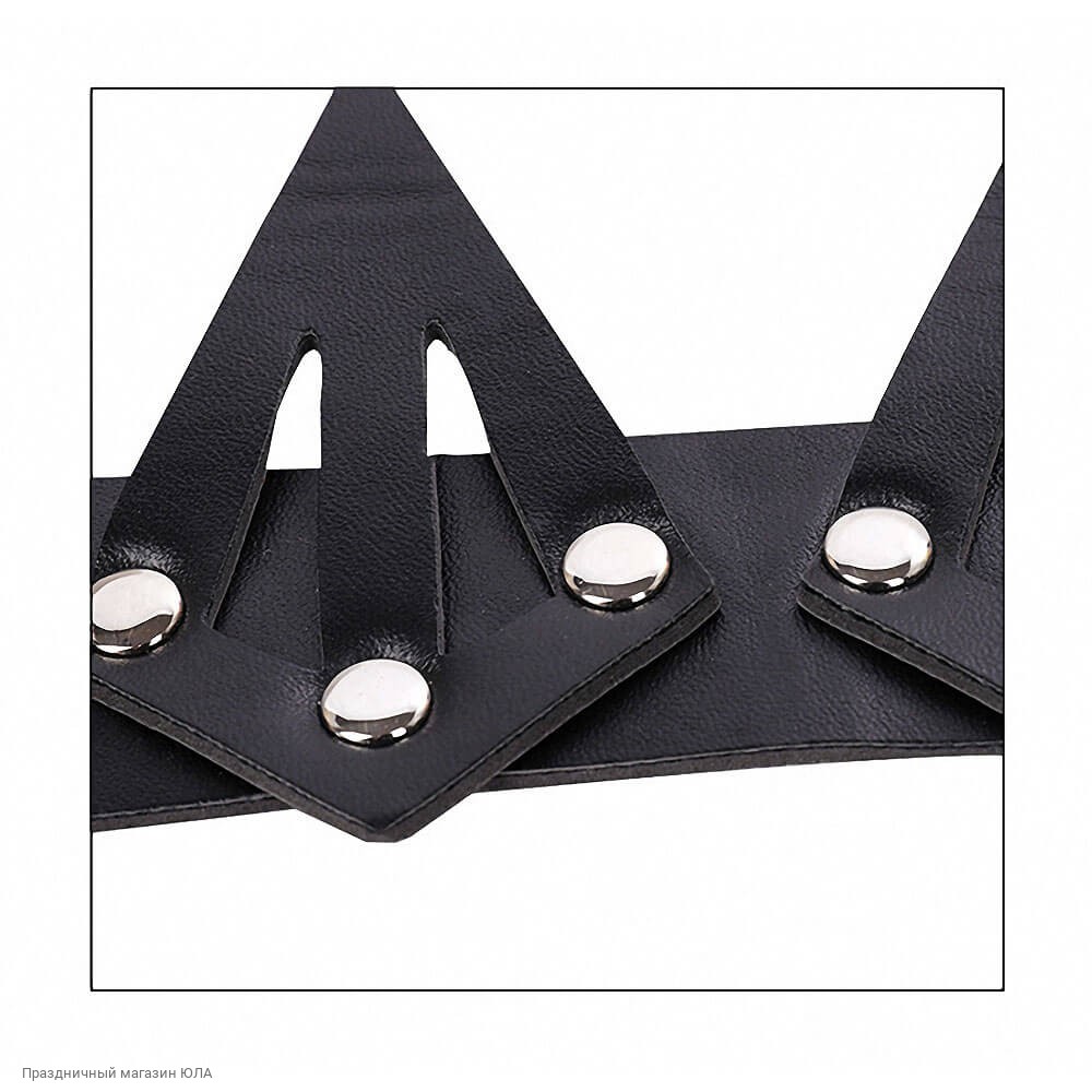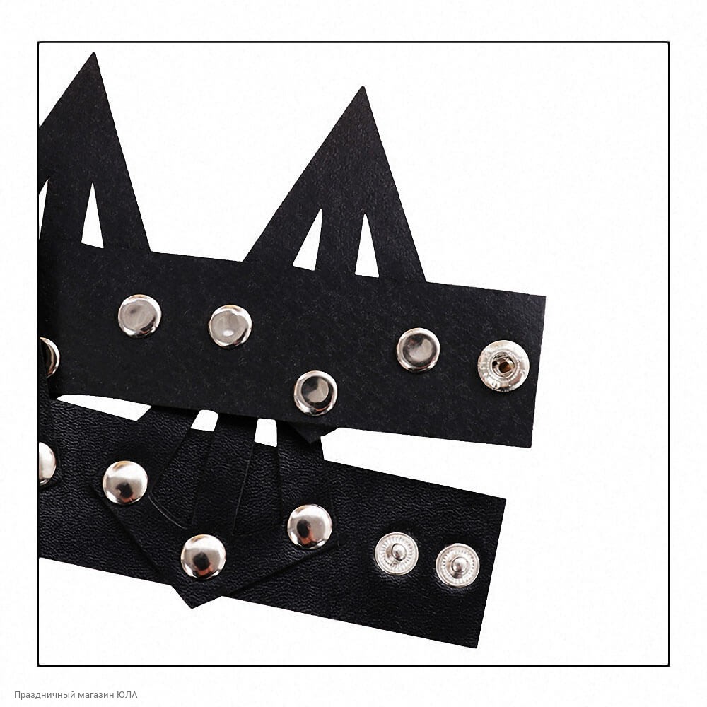 - Корона выполнена из чёрного кожзама и дополнена серебристыми клёпками.