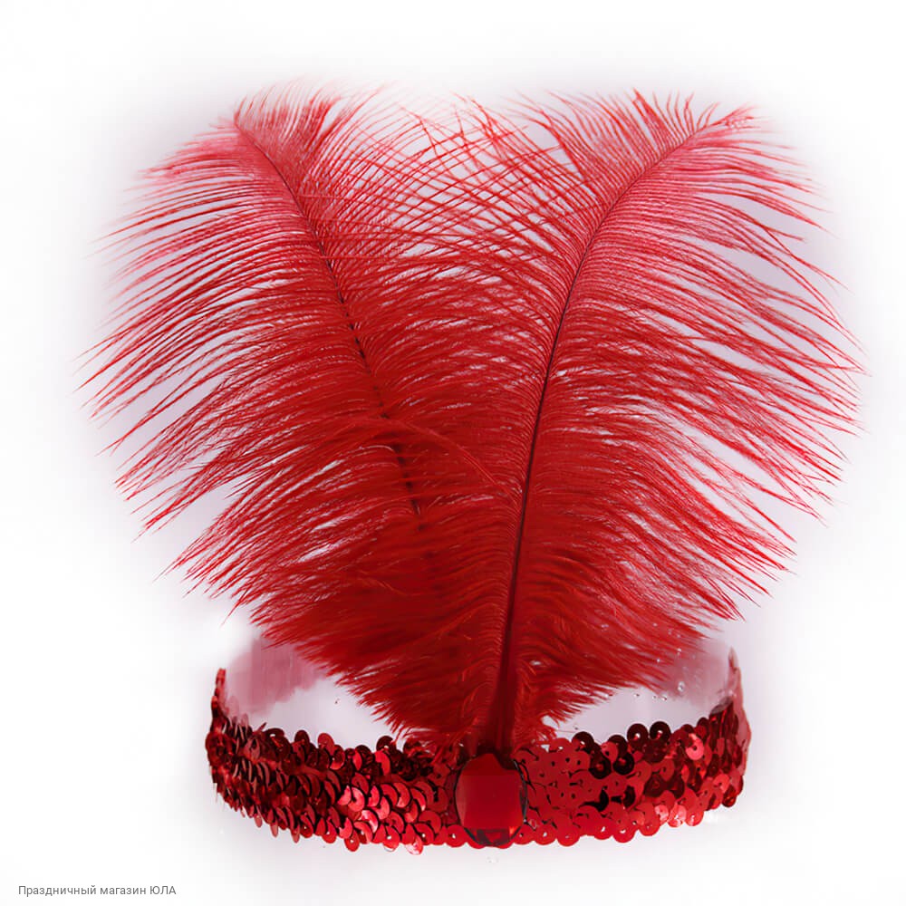 Повязка Кабаре пайетки с 2 перьями красная