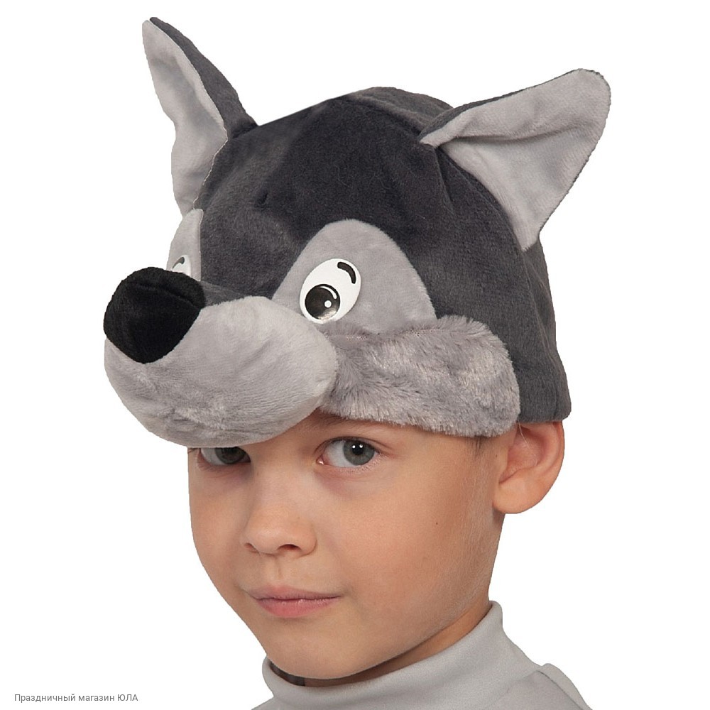 Шапочка "Волк" (плюш) детская р.52-54