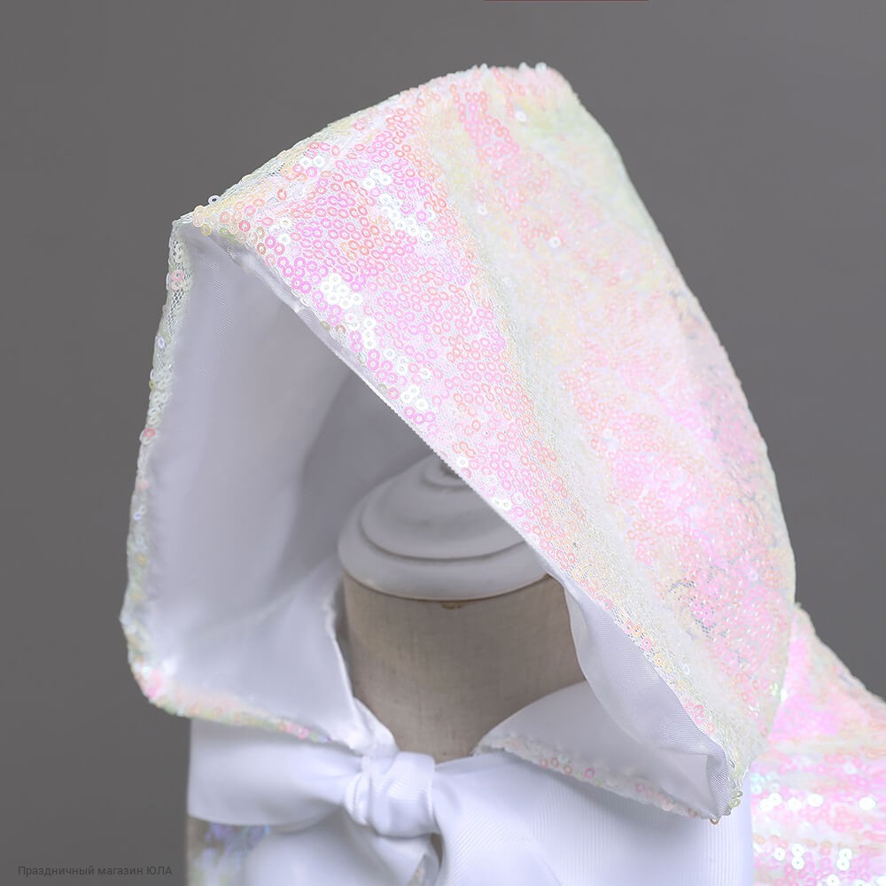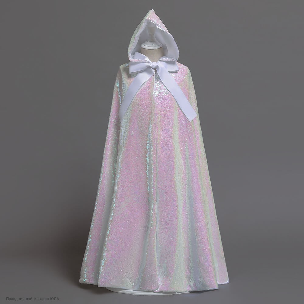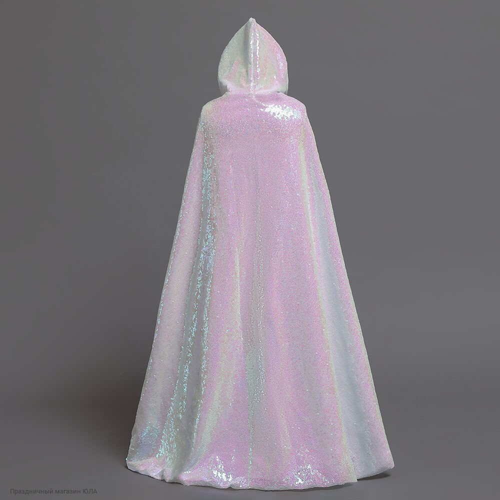 Блестящая накидка из ткани с пайетками, с подкладом и капюшоном. Длина накидки без капюшона - 85 см, с капюшоном - 115 см. Ширина по подолу - 260 см.