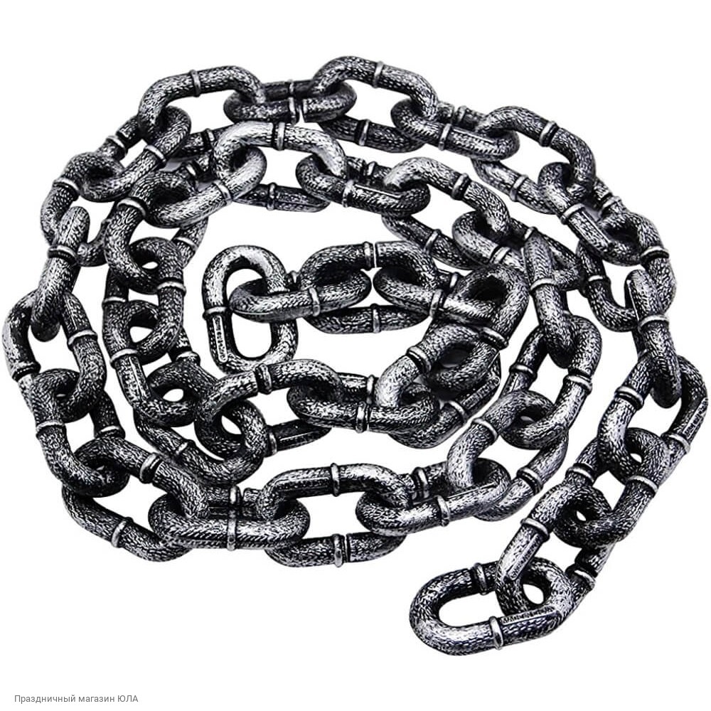 Изделие выполнено из пластика и имитирует металл с эффектом состаренности. Серебристые и темно-серые звенья создают аутентичный вид. В комплект входит сама цепь.