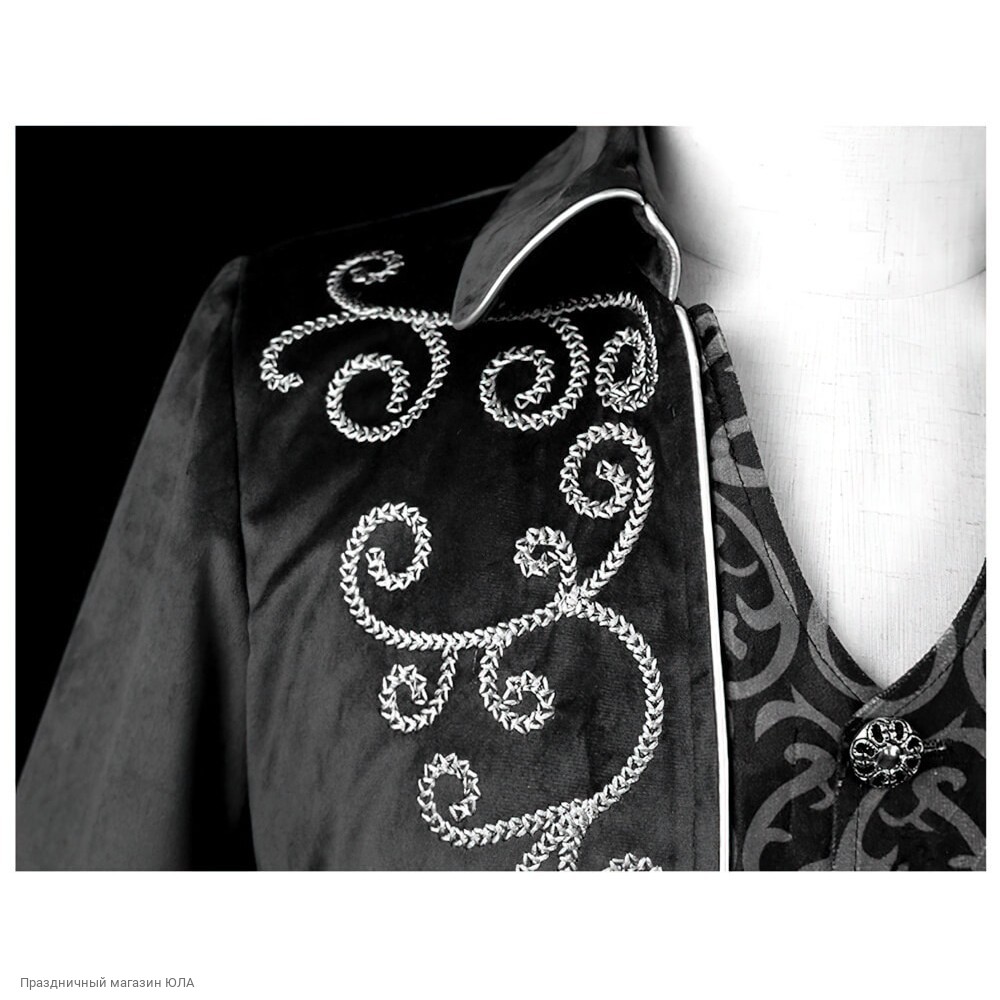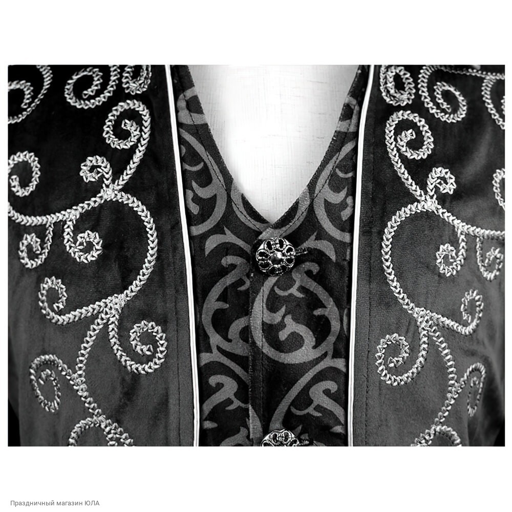 Сюртук (велюр с рисунком) косые полы, чёрный р.50-52
