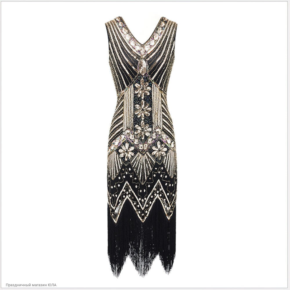 Платье "Гэтсби" пайетки, v-вырез (чёрн/золот) р.44-46