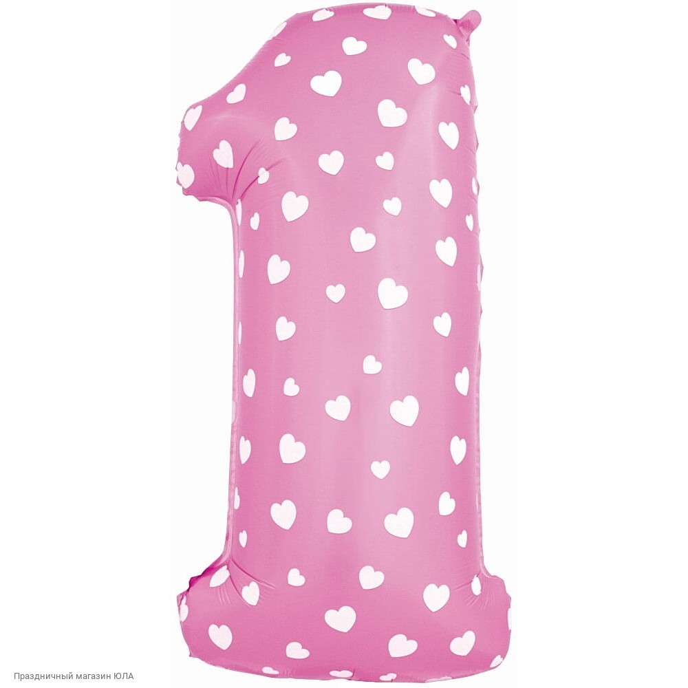 Шар фольга Цифра "1" Сердечки Розовый 40"/102см